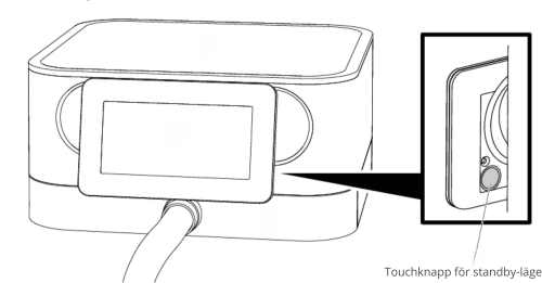 Om apparaten inte har använts under 30 minuter blir displayen svart och apparaten skiftar till standby-läge. Efter att touchknappen på baksidan av displayen har rörts vid är apparaten aktiv igen. Det går också att aktivera standby-läget med samma touchknapp.