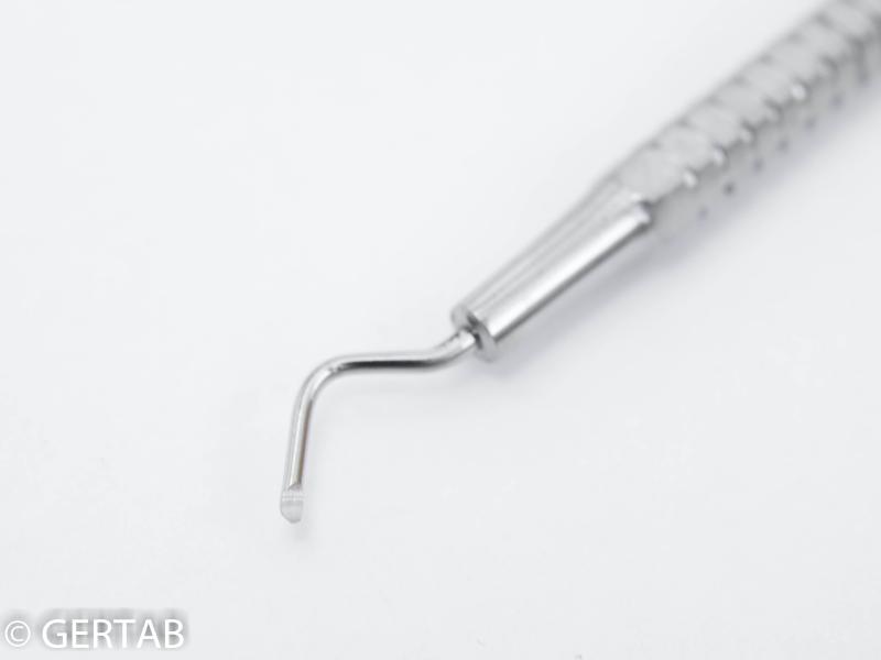 Dubbelsidig excavator i rostfritt stål med krok i båda ändar. Lämplig för detaljarbete.