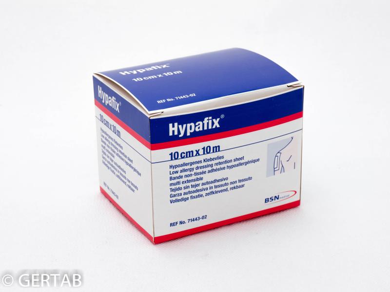Hypafix är ett självhäftande fixeringsförband tillverkat av luftgenomsläpplig non-woven-textil. Det är tvärelastiskt och formar sig enkelt efter kroppens konturer utan att begränsa rörelseförmågan. Förbandet används för att säkra primärförband och appliceras över hela ytan för att minska risken för kontaminering. Hypafix är latexfritt och har ett delat skyddspapper som förenklar appliceringen. Finns i två bredder: 5 cm eller 10 cm, båda i 10 meters längd.