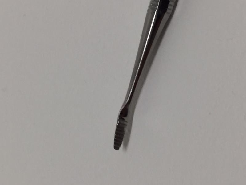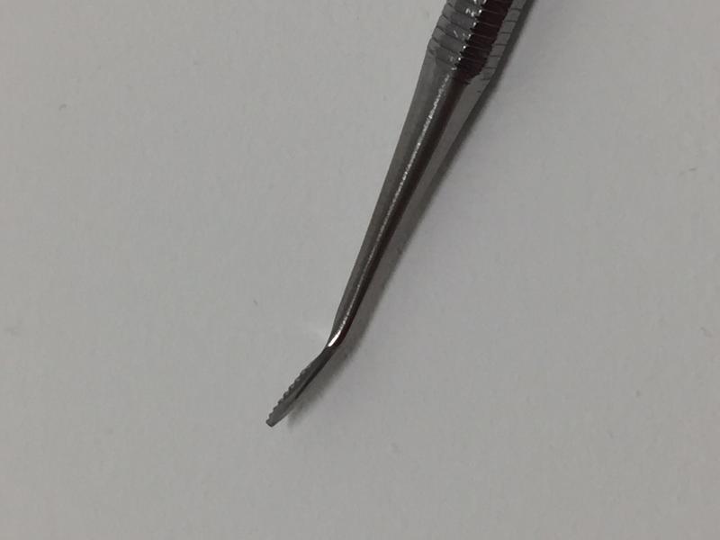 En praktisk nageltrångsfil med vinklade ändar för att nå trånga utrymmen där nageln tränger. Tillverkad i rostfritt stål för hållbarhet och hygien.