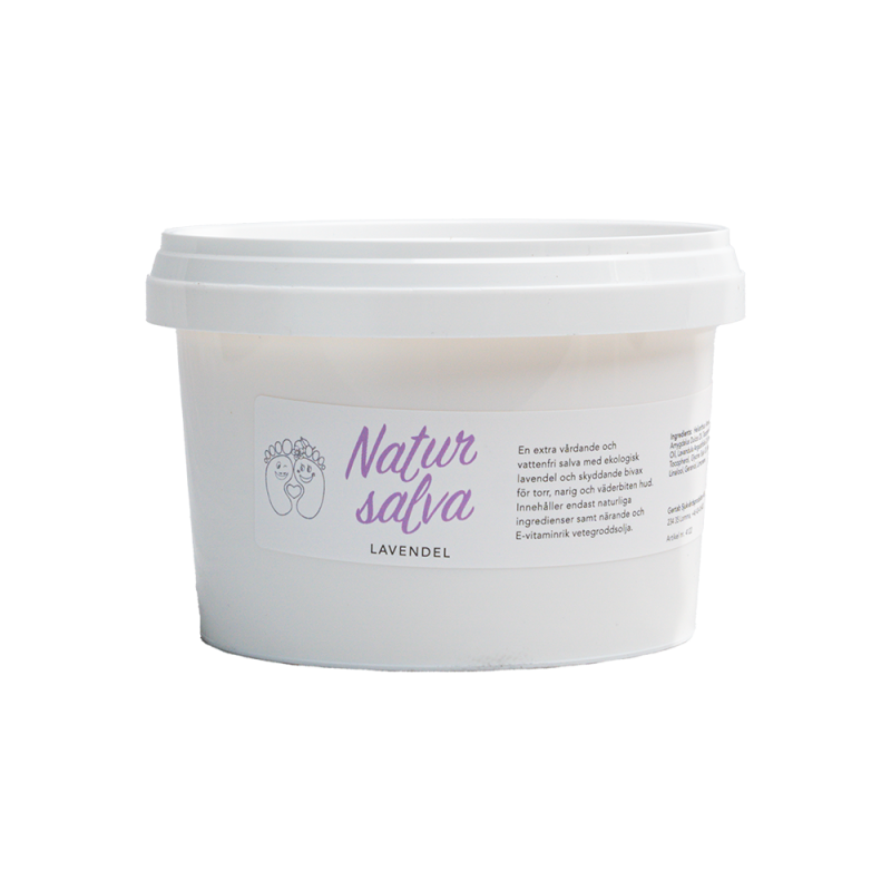 Den vattenfria, feta och dryga konsistensen gör Natursalva Lavendel idealisk för att massera in torra ben, fötter, armbågar och även för att smörja ömtåliga bebisrumpor. Salvan är särskilt effektiv vid kallt väder eftersom den skapar ett skyddande lager som bevarar hudens fuktbalans.