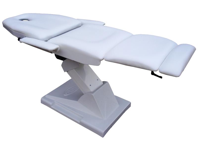 Denna hudvårdsstol från Vegoria är utvecklad för hudvårdssalonger, spa-behandlingar och lättare massage. Med tre motorer kan stolen enkelt justeras i höjd, fällas till plant läge samt höja och sänka fot- och benstödet. Armstöden följer ryggens rörelse för ökad komfort och kan även tas bort vid behov.