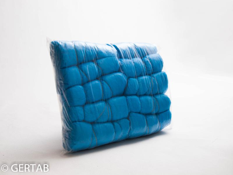 Blå engångsskoskydd i plast med resår för säker och hygienisk användning. 100 st/frp.