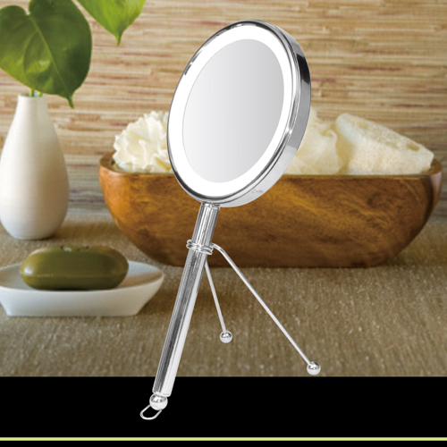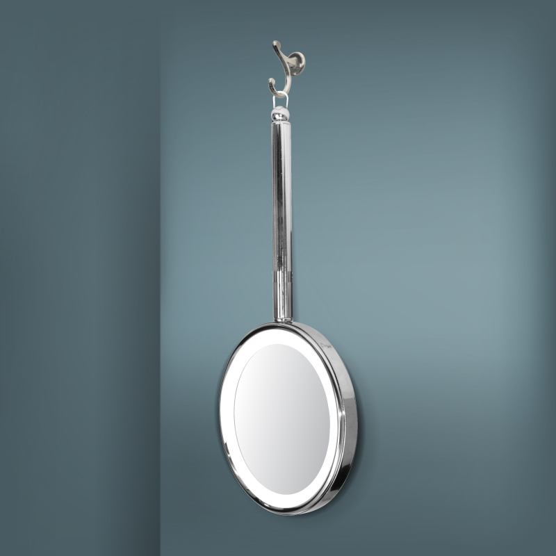 - Flexibel placering: Kan användas som handspegel, ställas på ett stativ eller hängas upp.